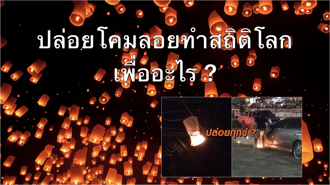 จากกรณี สภาอุตสาหกรรมท่องเที่ยวฯ จับมืออาร์มี่แลนด์ฯ-บริษัทนำเที่ยว เตรียมเปิดลานคิงคองจัดใหญ่ “ลอยกระทง-ปล่อยโคมเชียงใหม่” คาดมีนักท่องเที่ยวจีนร่วมกว่า 2 หมื่นคน เชิญกินเนสส์บุ๊กบันทึกสถิติ เราขอคัดค้านกิจกรรมแบบนี้ เพราะนอกจากคนที่จัดงานจะได้เงินได้ประโยชน์แล้ว เราว่าความเสี่ยงต่อความเสียหายมันมีมากมาย ทั้งกับประชาชนและสิ่งแวดล้อม เราเคยเห็นจากข่าวที่ไฟไหม้ สายไฟไฟไหม่บ้าน ไหม้รถ หรือคลังน้ำมันในต่างประเทศเพราะโคมไฟ ยังไม่นำขยะนับหมื่นที่จะถูกปล่อยไปโดยไม่มีการดูแล