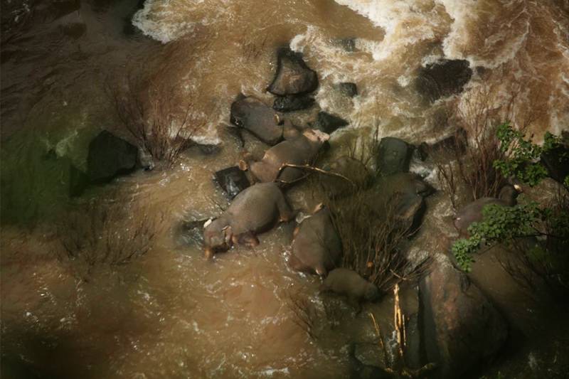 นายวิชัย พรลีแสงสุวรรณ์ ผอ.ส่วนอุทยาน สำนักบริหารพื้นที่อนุรักษ์ที่ 1 (ปราจีนบุรี) กล่าวว่า จากสภาพเส้นทางเดิน คาดว่าลูกช้างตัวเล็กสุดน่าจะลื่นและถูกกระแสน้ำพัดไป จากลักษณะของช้างเป็นสัตว์สังคม ทั้งแม่และพี่เลี้ยงพยายามจะลงไปช่วย เนื่องจากกระแสน้ำแรงมาก จึงทำให้พลัดไปตามกระแสน้ำอีก 5 ตัว รวมเป็น 6 ตัว ส่วนอีก 2 ตัว ที่ไปติดบนหน้าผาอีกฝั่งหนึ่งของลำห้วย ซึ่งตอนบ่ายได้วางแผนว่า โรยตัวข้ามฝั่งไปเพื่อเอาอาหารไปให้ช้าง ซึ่งลักษณะช้างมีอาการอ่อนแรง สักพักช้างได้ตัดสินใจข้ามฝั่งมาซึ่งใช้เวลาพอสมควร แต่ก็ปลอดภัย