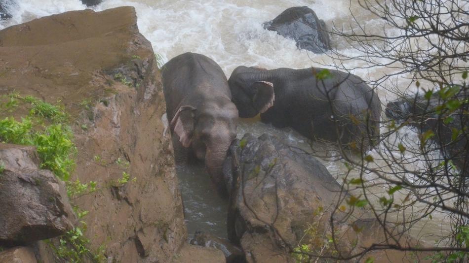 ล่าสุด เมื่อช่วงบ่ายที่ผ่านมา ปรากฏว่าหลังจากช้าง 2 ตัว เริ่มตัดสินใจจะข้ามฝั่งมายังจุดชมวิว โดยลูกช้างเริ่มใช้หัวกันที่ก้นแม่ลูก ทำให้ช้างตัวแม่ต้องเอางาดันก้อนหินและค่อยๆ เดินลงฝากระแสน้ำขึ้นมายืนบนโขดหินกลางสายน้ำ โดยมีลูกช้างค่อยๆ เดินมาอย่างระมัดระวัง จากนั้นตัวแม่ก็เริ่มเดินฝ่ากระแสน้ำลัดเลาะฝ่ากระแสน้ำไปตามแก่งหินที่ตื้น จนเดินข้ามลำธารมาฝั่งชมวิวได้ โดยมีทางเจ้าหน้าที่คอยตะโกนบอกและให้กำลังใจช้างทั้งสองตัว