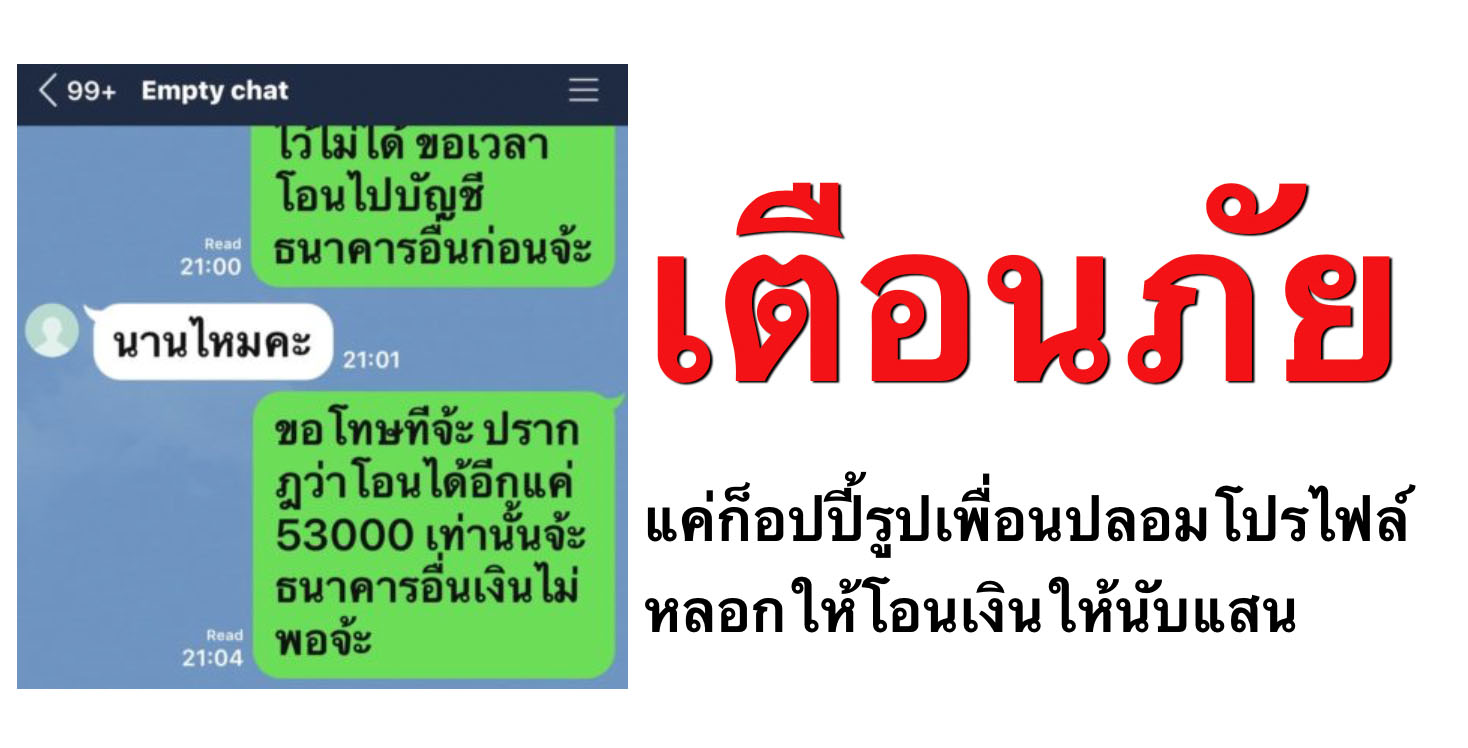 เมื่อวันที่ 9 พ.ย. ผู้สื่อข่าว “ข่าวสด” ได้รับการร้องเรียนจาก น.ส.ธรธิดา อินทรปาลิต อายุ 67 ปี ตำแหน่งผู้จัดการจัดทัวร์ต่างประเทศชื่อดังแห่งหนึ่ง หลังถูกคนร้ายแอบอ้างตัวเป็นเพื่อนสนิททักแชทผ่านแอพพลิเคชันไลน์เข้ามาขอยืมเงินจนได้รับความเสียหายมูลค่า 47,000 บาท นอกจากนี้คนร้ายยังไปหลอกขอยืมเงินจากกลุ่มเพื่อนๆ ในลักษณะเดียวกันนับ 10 ราย จนมีเหยื่อเกิดหลงเชื่ออีก 1 ราย รวมมูลค่าความเสียหายเกือบ 1 แสนบาท
