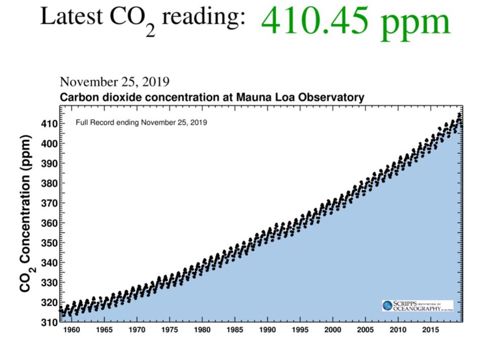 The Keeling Curve with the latest CO2 levels. HTTPS://SCRIPPS.UCSD.EDU/PROGRAMS/KEELINGCURVE/