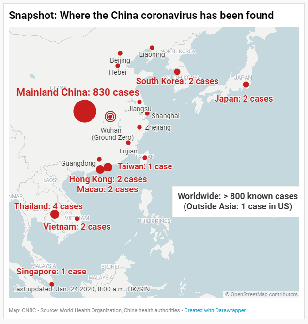 ไวรัสดังกล่าวเกิดขึ้นในเมืองหวู่ฮั่นกลางของจีนในมณฑลหูเป่ยเมื่อปลายปีที่แล้วและแพร่กระจายไปยังเมืองจีนรวมถึงปักกิ่งและเซี่ยงไฮ้รวมถึงสหรัฐอเมริกาไทยเกาหลีใต้และญี่ปุ่น