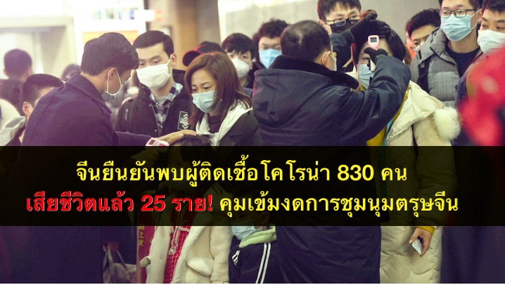 ปักกิ่ง (รอยเตอร์) - จีนยืนยันผู้ป่วย 830 รายที่ติดเชื้อ coronavirus ใหม่เมื่อวันที่ 23 มกราคมขณะที่จำนวนผู้เสียชีวิตจากไวรัสเพิ่มขึ้นเป็น 25คน จากการแถลงอขง
