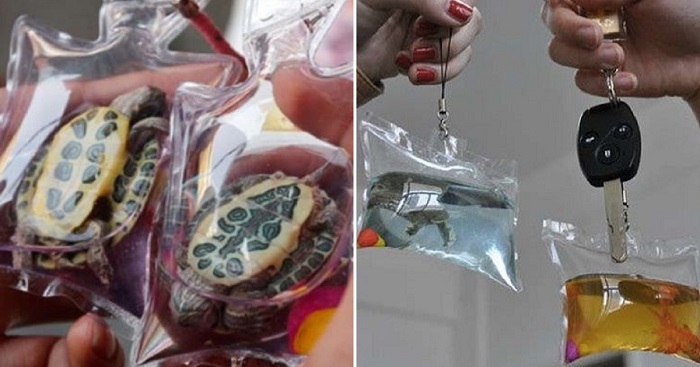 ผู้ขายพวงกุญแจสัตว์มีชีวิตคนหนึ่งบอกกับผู้สื่อข่าว ซีเอ็นเอ็นว่าถุงจะบรรจุ “ออกซิเจนและสารอาหาร” แต่เห็นสภาพก็รู้ว่าสัตว์เหล่านี้ต้องทุกข์ทรมานขนาดไหน โดยพวงกุญแจจะถูกขายในราคา10 หยวนหรือประมาณ 40 บาท