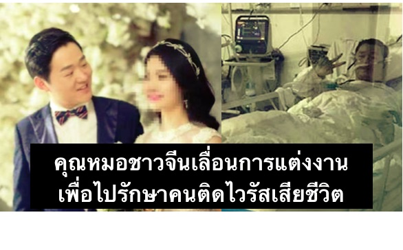 แพทย์ทางเดินหายใจและผู้ป่วยวิกฤติได้วางแผนที่จะแต่งงานในช่วงวันหยุดตรุษจีนที่ผ่านมาแต่เลื่อนการแต่งงานของเขาเพื่อช่วยรักษาผู้ป่วยโรคหลอดเลือดหัวใจ รายงานจากซินหัวบอกว่า