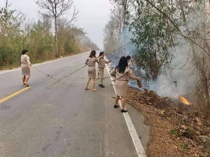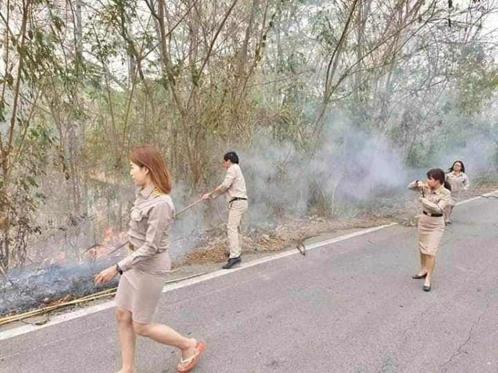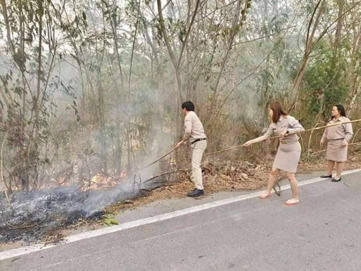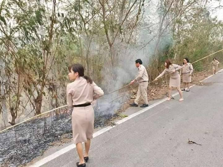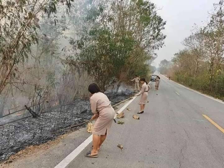 แชร์ภาพน่าประทับใจ หลังคณะครูกศน.งาวพบเจอเหตุไฟไหม้ป่าระหว่างทางกลับจากอบรม ทุกคนไม่รอช้ารีบพากันลงจากรถพร้อมช่วยกันดับไฟอย่างเต็มที่ในชุดข้าราชการ