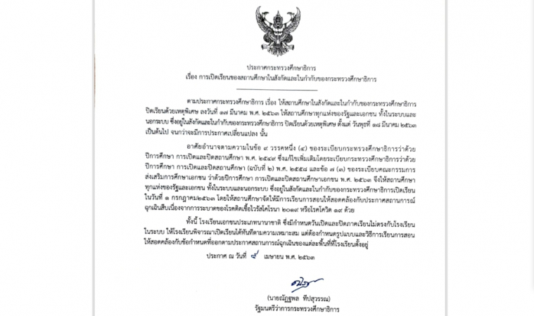 “ซึ่งข้อมูลของมาตรการ และข้อเสนอดังกล่าวนี้ ทาง สช.จะได้นำเรียนรัฐมนตรีว่าการกระทรวงศึกษาธิการ และนำเข้าสู่ที่ประชุมศูนย์บริหารสถานการณ์โควิด-19 (ศบค.) เพื่อพิจารณาอนุมัติต่อไป” ดร.อรรถพล กล่าวทิ้งท้าย