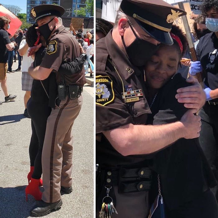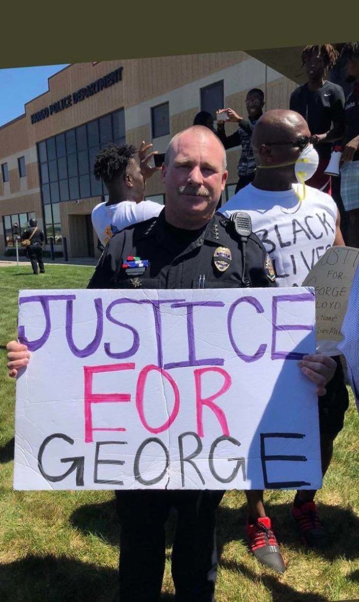 หัวหน้าตำรวจซานตาครู๊ซคุกเข้าเพื่อแสดงความเห็นใจผู้ประท้วงตลอดเวลาการเดินขบวน