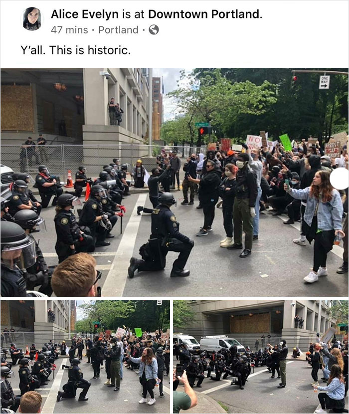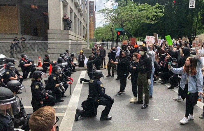 กลางเมืองพอร์ทแลนด์ ตำรวจคุกเข่าเพื่อรับทราบและเข้าใจผู้ประท้วง