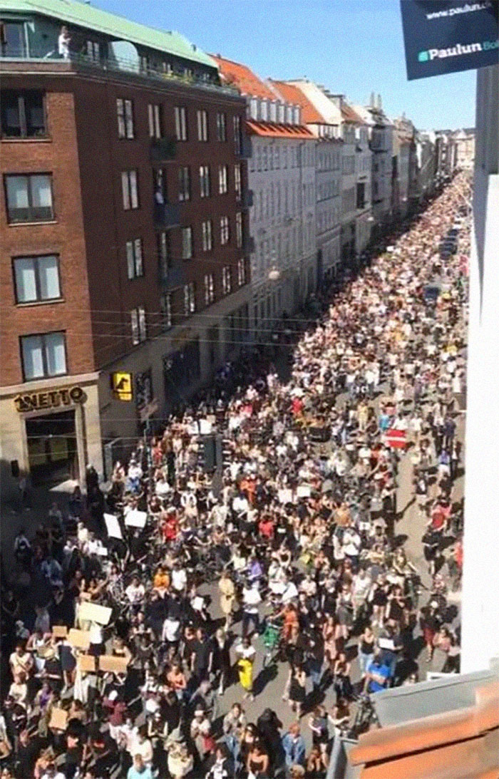 คนนับหมื่นเดินอย่างสงบเพื่อจอร์จฟลอย ที่กรุงโคเป็นเฮเก้น ประเทศสวีเดน