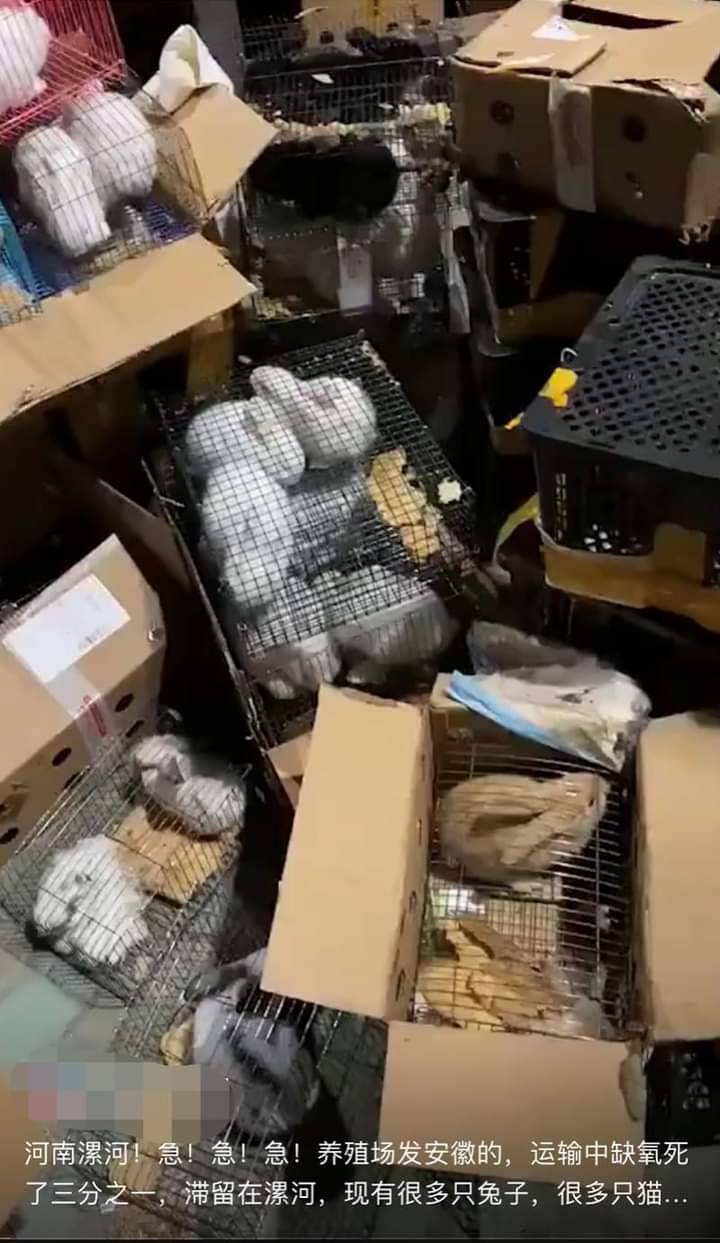 กฎหมายจีนห้ามการขนส่งสัตว์มีชีวิตในบรรจุภัณฑ์ปกติ มีแนวโน้มว่าสัตว์จะถูกซื้อทางออนไลน์เพื่อเป็นสัตว์เลี้ยง แต่ถูกทิ้งให้ติดอยู่ที่สถานีขนส่งเนื่องจากการรวบรวมล่าช้าเนื่องจาก บริษัท โลจิสติกส์ที่เกี่ยวข้องอาจปฏิเสธที่จะลงนามในการขนส่งที่ละเมิดกฎหมายการขนส่ง ภาพถ่ายแสดงให้เห็นสุนัขแมวกระต่ายและหนูตะเภาราว 5,000 ตัวที่ถูกพบเสียชีวิตที่สถานีขนส่ง Dongxing ในเมือง Luohe ในมณฑลเหอหนานของจีน