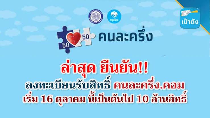 ให้ลงทะเบียนผ่าน เว็ปไซต์ชื่อ คนละครึ่ง เริ่มวันที่ 16 ตุลาคม 2563 จำกัดจำนวน 10 ล้านสิทธิ