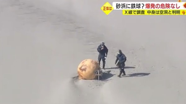 ณี่ปุ่นพบลูกกลมโลหะไม่ทราบที่มาถูกซัดเกยตื้นบนชายหาดในญี่ปุ่น ทำให้เจ้าหน้าที่ต้องปิดกั้นพื้นที่เพื่อตรวจสอบแล้ว