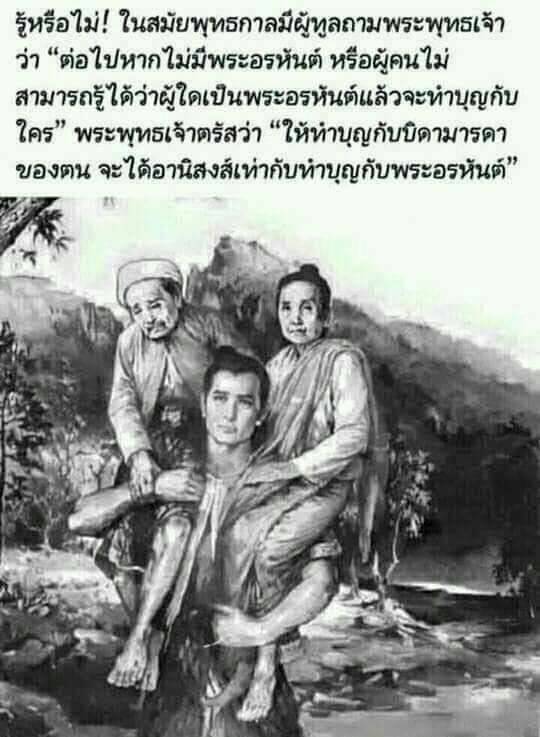 ดูแลท่านอย่างดีพร้อมสมบูรณ์ทุกวันแล้ว จึงค่อยไปบูชาสิ่งศักดิ์สิทธิ์อื่น ๆ หากไม่บูชาพ่อแม่ ไม่ตอบแทนพระคุณและทำสิ่งที่ไม่ดีกับท่านทั้งกาย วาจา ใจ บอกได้คำเดียวว่า ต่อให้พบสิ่งศักดิ์สิทธิ์ที่สุดตรงหน้าก็ยากที่จะได้!!
