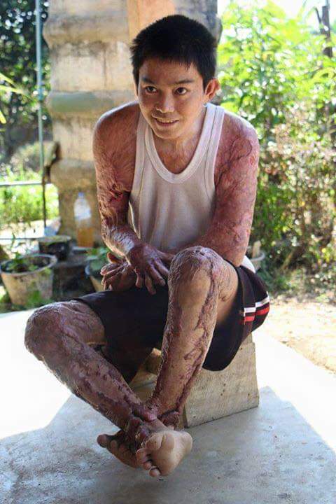 ผู้ใช้เฟซบุ๊กชื่อคุณ Natty Rescue ได้แชร์ภาพชายหนุ่มคนหนึ่ง ที่ได้รับบาดเจ็บจากผลพ่วงของอุบัติเหตุแก๊สเผาร่างกาย เมื่อปี 2557 ที่ผ่านมา