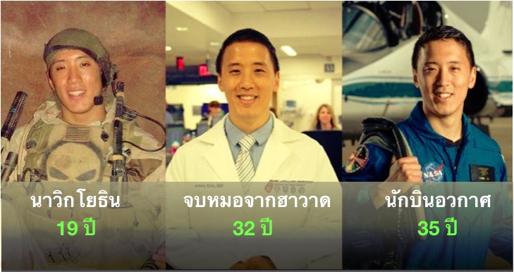 จอนนี่ คิม เชื้อชาติเกาหลี สัญชาติอเมริกัน ซึ่งเป็นเนวี่ซีลคนแรกและต่อมาก็จบหมอฮาร์วาร์ด ตอนนี้เป็นนักบินอวกาศที่ผ่านการรับรองจากองค์การนาซ่าเขาประสบความสำเร็จทั้งหมดนี้เมื่อเขาอายุแค่ 35