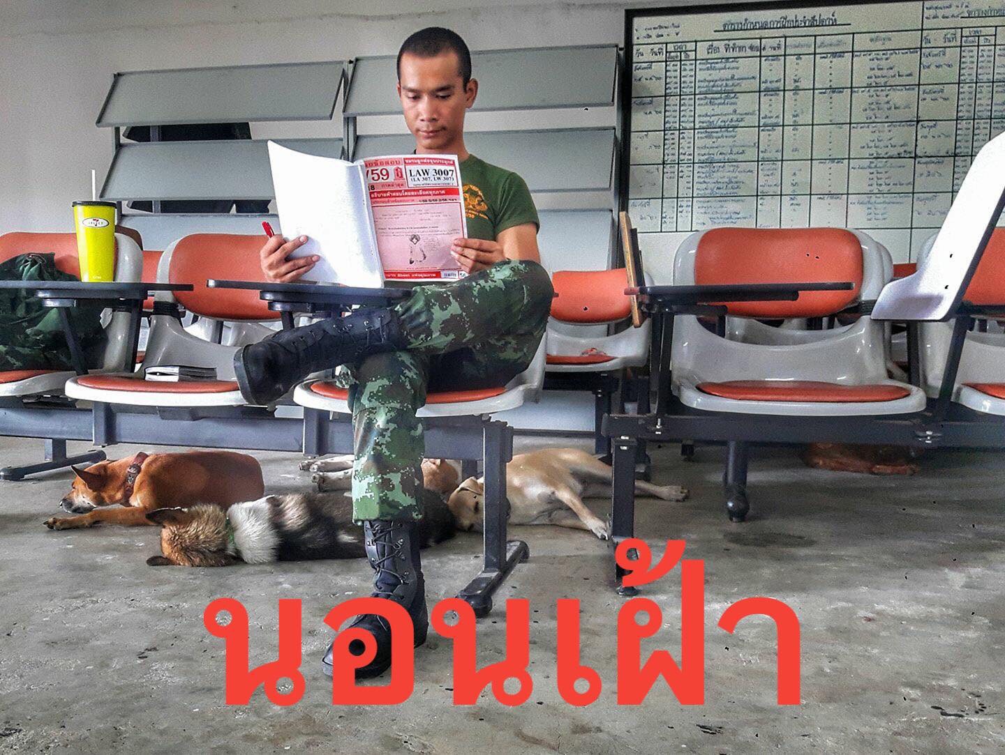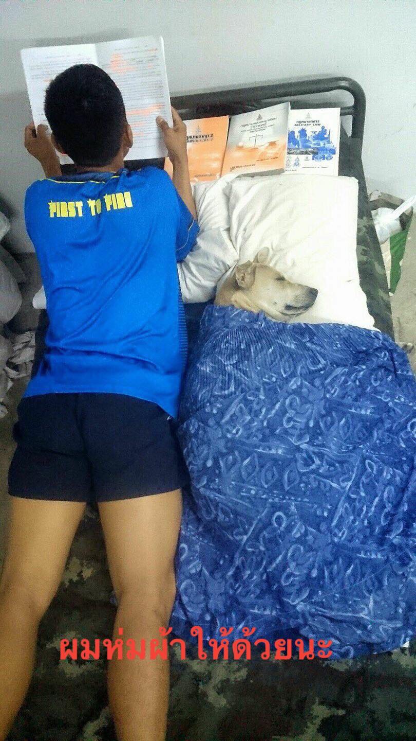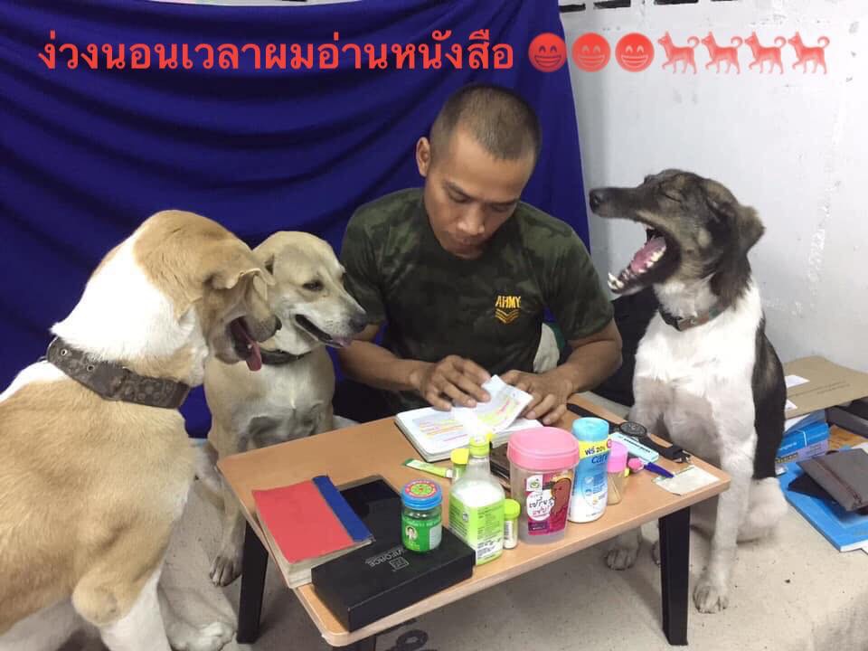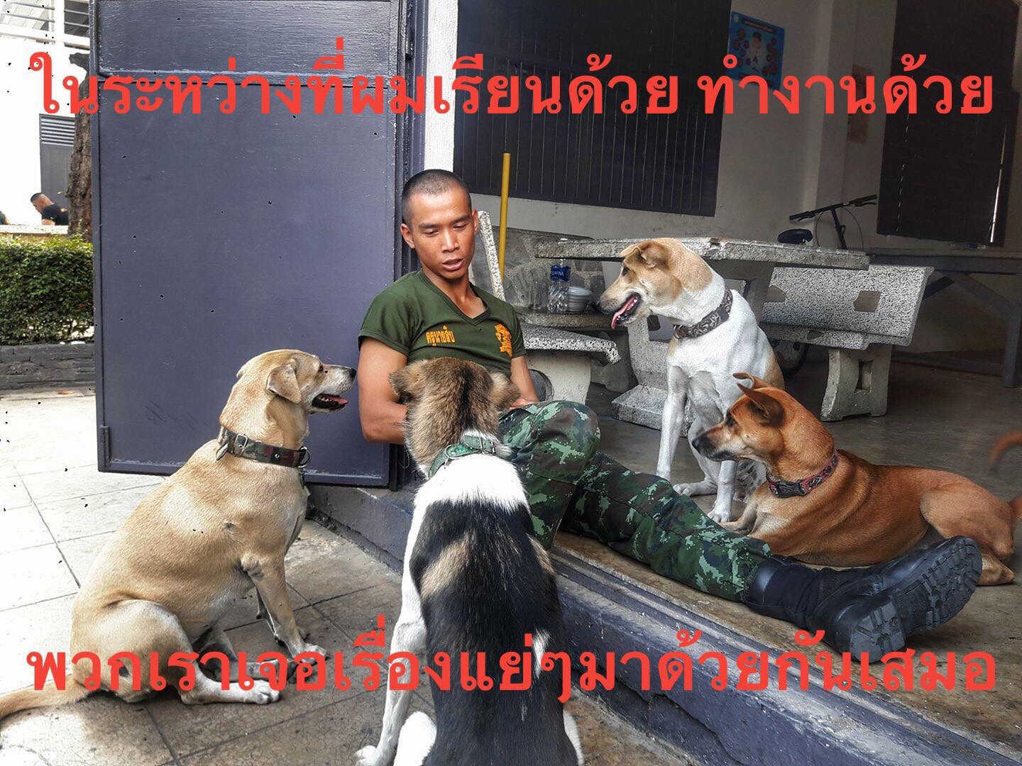 ภาพที่แชร์เป็นกิจกรรมระหว่างที่คุณโอเล่หรือสิบเอกกิตติศักดิ์ ภาโว ทำกิจกรรมต่างๆร่วมกับสุนัขทั้งสี่ ไก้แก่ แม่แดง พี่ด่าง น้องปุยและพี่ครีม ทั้งอ่าหนังสือ ทำงาน ฯลฯ จนกระทั่งคุณโอเล่ ได้รับปริญญาตรี นิติศาสตร์บัญฑิต จากมหาวิยาลัยรามคำแหง