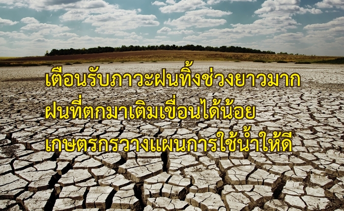 ขณะที่กรมอุตุนิยมวิทยารายงานว่า โอกาสที่ฝนจะตกในเดือน ก.ค.นี้ อาจจะน้อยกว่าปีที่แล้ว ภาวะฝนทิ้งช่วงอาจจะส่งผลรุนแรงในหลายพื้นที่มากขึ้น โดยเฉพาะพื้นที่นอกเขตชลประทานและพื้นที่แล้งซํ้าซาก เนื่องจากมรสุมตะวันตกเฉียงใต้ที่พัดปกคลุมทะเลอันดามันและประเทศไทยจะมีกำลังอ่อนลง ส่วนร่องมรสุมจะเลื่อนขึ้นไปพาดผ่านบริเวณตอนใต้ของประเทศจีน ดังนั้น ปริมาณฝนที่จะตกลงมามากๆ เกษตรกรจะต้องรอจนถึงเดือน ส.ค.-ก.ย.หรืออีก 2 เดือนข้างหน้า ซึ่งในช่วงเวลานั้น ยังต้องเผชิญกับภัยน้ำท่วม น้ำป่าไหลหลาก รวมถึงน้ำล้นตลิ่งอีกด้วย ผลผลิตของเกษตรกรที่คาดว่าจะสร้างรายได้เป็นกอบเป็นกำ อาจจะไม่เป็นอย่างที่คิด ดังนั้น เกษตรกรควรจะเฝ้าระวังผลผลิตอย่าให้ขาดแคลนน้ำเป็นอันขาด แม้ว่าประเทศไทยจะเป็น “อู่ข้าว อู่น้ำ” ก็ตาม.