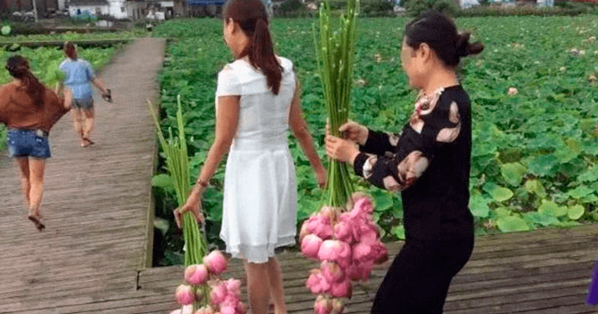 นักท่องเที่ยว (จีนอีกแล้ว)พังรั้วเข้าไปเก็บดอกบัวในสวนสาธารณโบราณจนเกลี้ยง