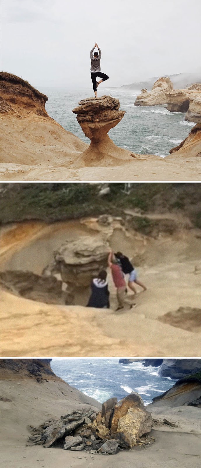 นักท่องเที่ยวทำลายโขดหินที่เป็นสัญลักษณ์ประจำหาดในโอเรกอน