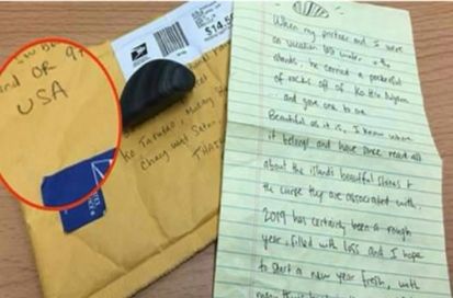 จดหมายฉบับหนึ่งบอกว่า “เมื่อแฟนและฉันใช้เวลาในช่วงวันหยุดฤดูหนาวที่เกาะเราถือหินก้อนหนึ่งออกจากเกาะหินงามตั้งแต่นั้นมาตลอด ปี 2019 เป็นปีที่ยากลำบากเต็มไปด้วยความสูญเสียมากมายและฉันหวังว่าจะเริ่มต้นปีใหม่ด้วยหลายสิ่งหลายอย่างกลับมา….