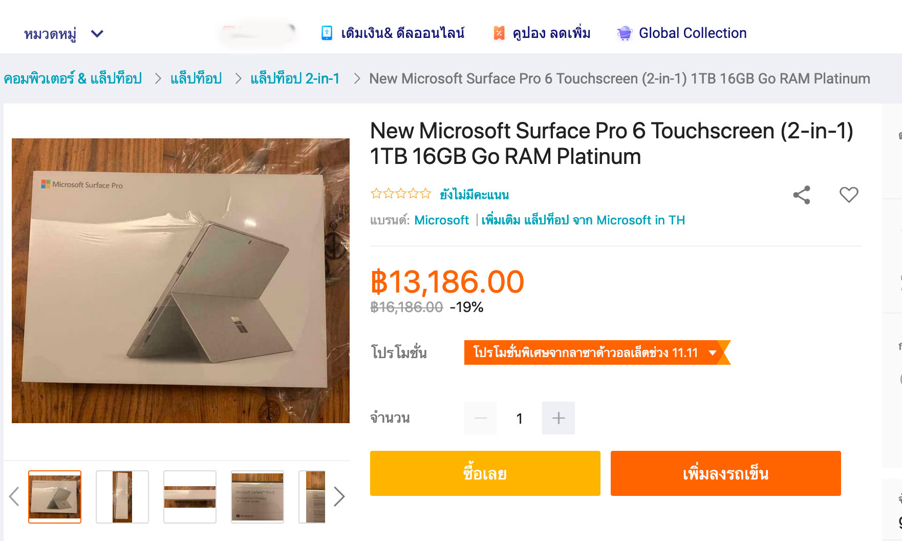 Microsoft Surface Pro 6 Touchscreen (2-in-1) 1TB 16GB Go RAM Platinum ราคาหมื่นสาม! บ้าไปแล้ว บอกได้เลยแบบนี้โกงร้อยเปอร์เซนต์