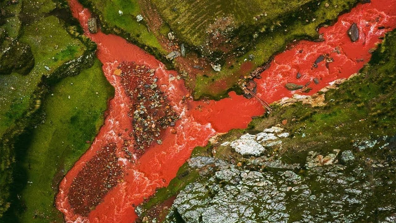แม่น้ำแดงในกุสโก, เปรูเป็นหนึ่งในสถานที่ที่มีเอกลักษณ์มากที่สุดในโลก มันเป็นสีแดงเนื่องจากการล้างแร่ออกไปตามเทือกเขาที่อยู่รอบ ๆ ในความเป็นจริงแม่น้ำเป็นเพียงสีแดงในช่วงฤดูฝนของเปรูเท่านั้น