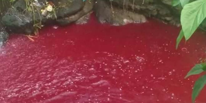 สามเหตุที่แม่น้ำเป็นสีแดงเพราะหุมเขาต้นน้ำมีดินที่ประกอบไปด้วยแร่ธาตุ สนิมเหล็กและ ฮีมาไทต์ หรือ แร่เหล็กแดง(Hematite) มาจากภาษากรีก “hiama” แปลว่า เลือดเพราะมีสีผงละเอียดสีแดงเลือกหมูเป็นจำนวนมากทำให้เวลาฝนตก ฝนชะเอาสีแดงลงมากในแม่น้ำ