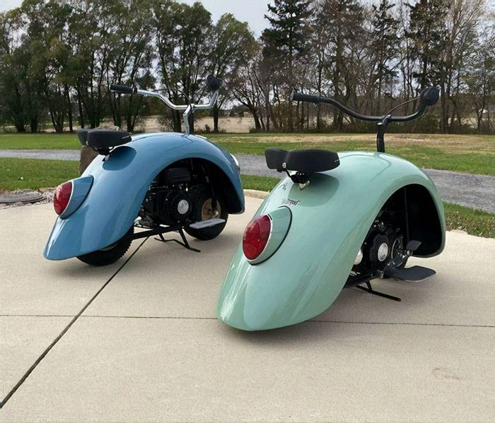 “ ต้นฉบับ (สีเขียว) มีมอเตอร์ขนาด 79 ซีซี คันที่สอง (สีน้ำเงิน) มีระยะห่างจากพื้นดินมากขึ้นและมีเครื่องยนต์ขนาดขนาด 212 ซีซี ทำให้เหมาะแก่การขี่ไปตามถนนมากกว่า”
