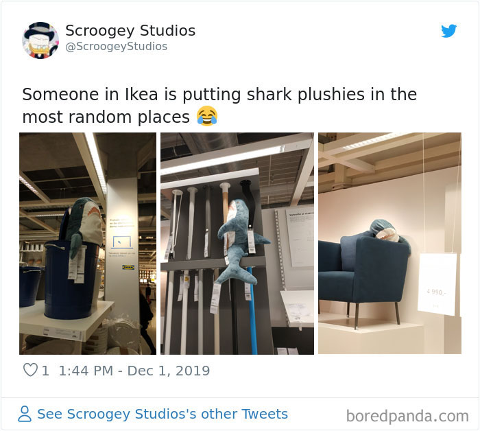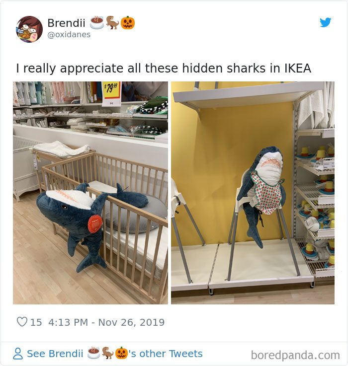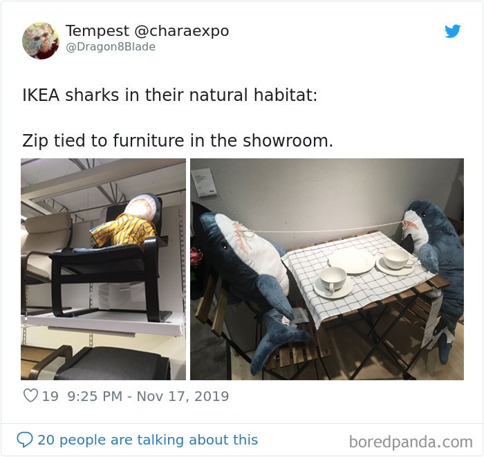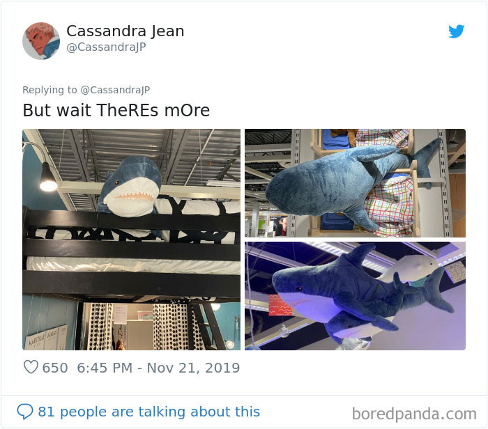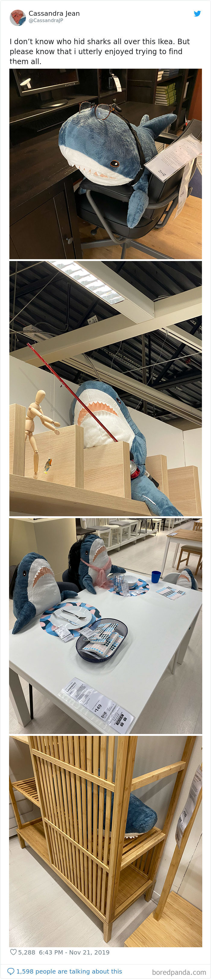 สิ่งที่เกิดขึ้นคือมีผู้คนมากมายถ่ายภาพฉลามน่ารักๆ ในห้างอิเกียแล้วโพสลงโซเชียลอย่างมากมาย