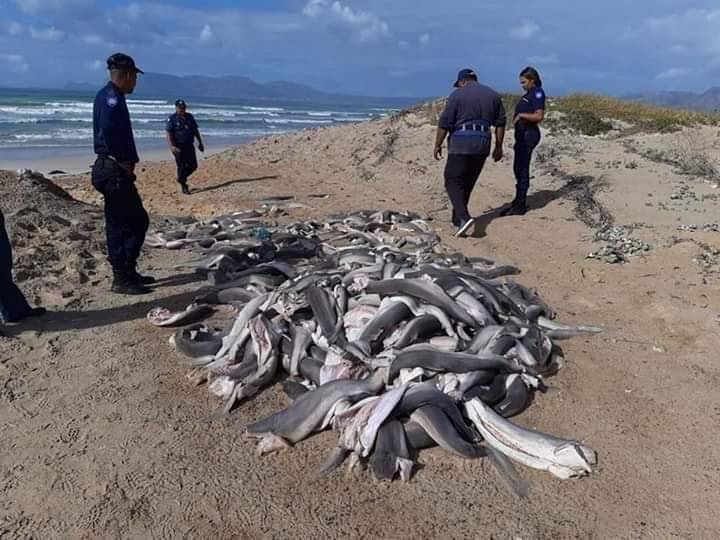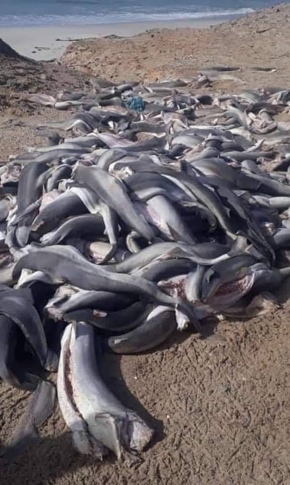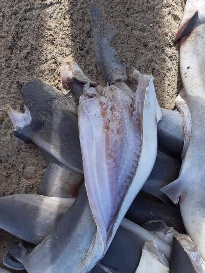 Facebook ของ Proudly Strandfontein ได้โพสภาซากฉลามนับร้อยที่ถูกตัดหัวและครีบแล้วเอามาทิ้งไว้ที่ชายหาด Strandfontein ในเคปทาวอัฟริกาใต้