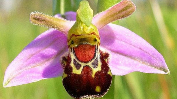 มีชื่อวิทยาศาสตร์ว่า Ophrys bomybliflora พบทั่วไปในเขตเมดิเตอร์เรเนียน ตั้งแต่ประเทศโปรตุเกส หมู่เกาะคานารี จนถึงตุรกี เลบานอน และเติร์กเมนิสถาน ในยุโรปเรียกว่า “กล้วยไม้ผึ้ง” เนื่องจากกลีบดอกมีลักษณะคล้ายผึ้งขนปุนดอกมีสีม่วงเจือสีแดงเข้ม ส่งกลิ่นหอมเลียนแบบผึ้งตัวเมีย เพื่อดึงดูดผึ้งตัวผู้ให้เข้ามาผสมเกสร เชื่อกันว่า ผึ้งตัวผู้มักเลือกดอกที่เข้าใจว่าเป็นผึ้งตัวเมียมากที่สุด เพื่อพยายามผสมพันธุ์และถ่ายเทละอองเกสร