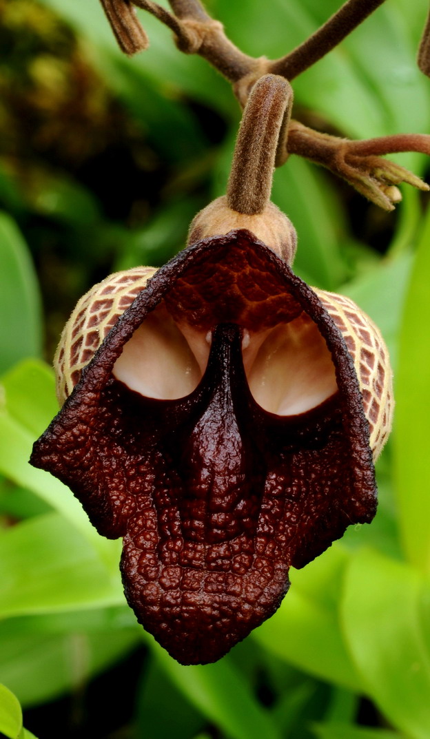 มีชื่อวิทยาศาสตร์ว่า Aristolochia Salvadorensis เป็นดอกไม้พื้นเมืองของประเทศบราซิล เป็นพันธุ์ไม้หน้าตาแปลกประหลาดหายาก ออกดอกในเดือนเมษายนถึงมิถุนายน คนทั่วไปมักเรียกว่า ดอกดาร์ท เวเดอร์ เนื่องจากลักษณะเปลือกเรียบ รูปร่างคล้ายคนสวมหน้ากาก เหมือนตัวละครในภาพยนตร์ดังเรื่องสตาร์ วอร์ส ที่มีชื่อว่า “ดาร์ท เวเดอร์” สาเหตุที่ทำให้มันมีหน้าตาและสีเช่นนี้ เนื่องจากตั้งใจให้ดูเหมือนเนื้อที่กำลังเน่าเปื่อยและส่งกลิ่นเหม็น ดูน่าขยะแขยง เพื่อดึงดูดให้แมลงเข้ามาผสมเกสรนั่นเอง