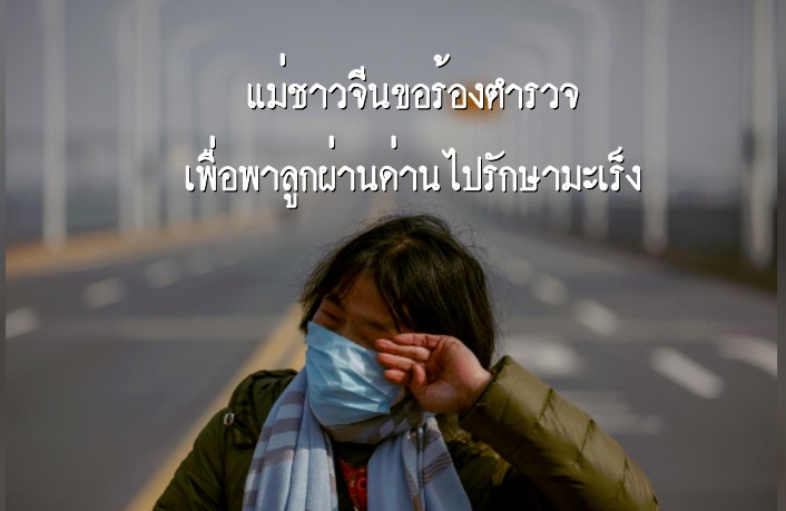 ลูเยี่ยจิน แม่วัย 50 ปีพยายามที่จะผ่านด่านตรวจบนสะพานข้ามแม่น้ำแยงซีและออกจากมณฑลหูเป่ยที่เป็นเขตกักกันโรคไวรัสโคโรนาเพื่อนำลูกสาวไปทำเคมีบำบัด
