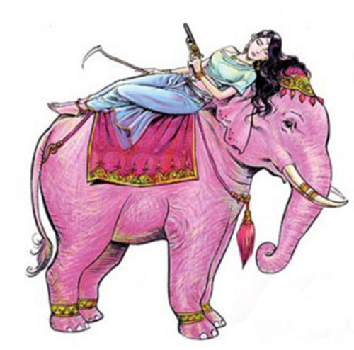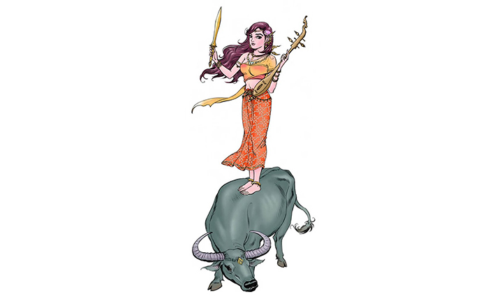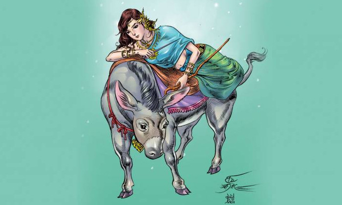 กิมิทาเทวีเป็นนางสงกรานต์ประจำวันศุกร์ ทัดดอกจงกลนี มีบุษราคัมเป็นเครื่องประดับ ภักษาหาร คือ กล้วยและน้ำ อาวุธคู่กาย พระหัตถ์ขวาถือพระขรรค์ พระหัตถ์ซ้ายถือพิณ เสด็จประทับยืนเหนือมหิงสา (ควาย)