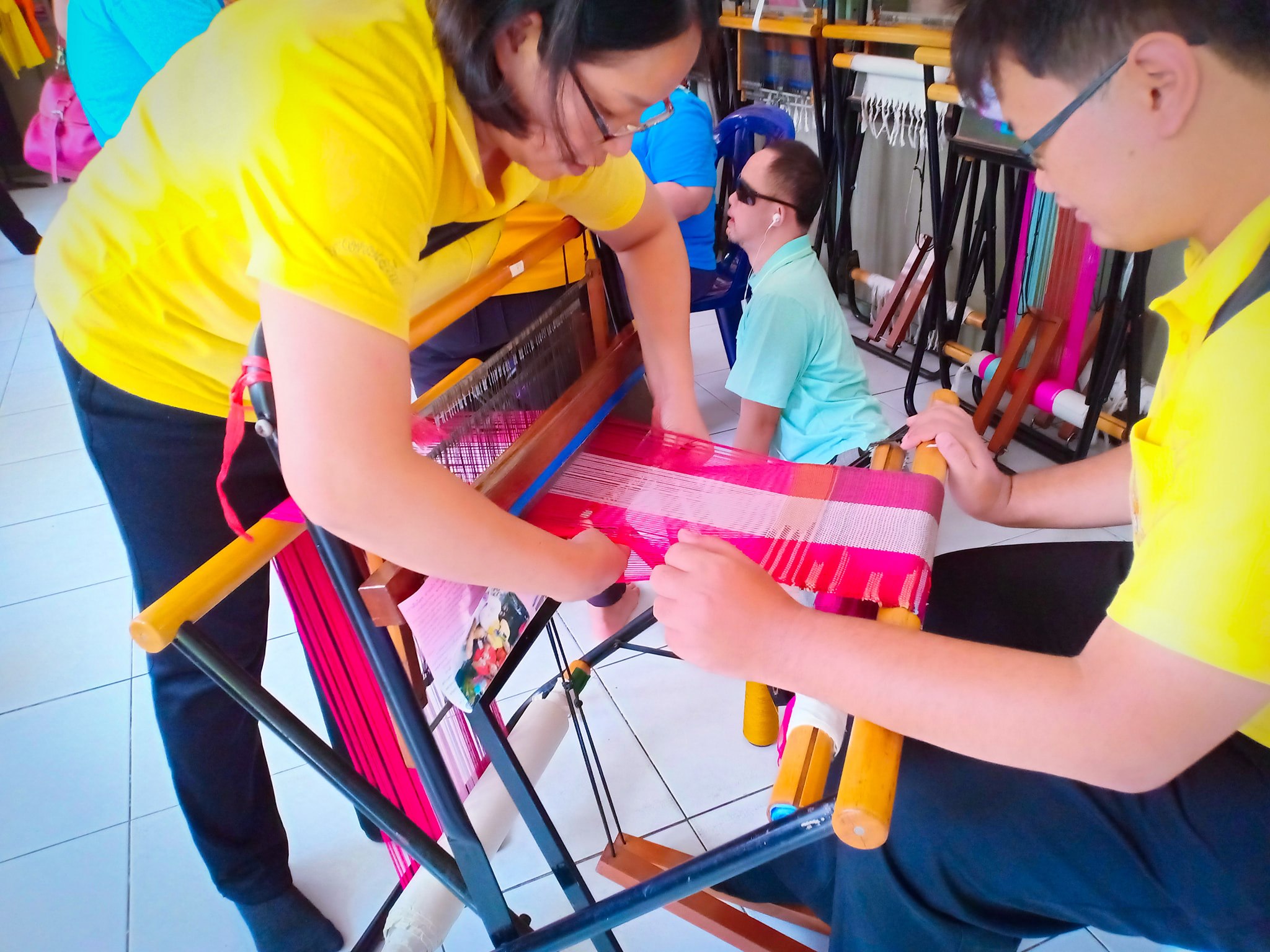 เราได้มิตรชาวญี่ปุ่นช่วยออกแบบกี่ทอผ้าที่เอื้อผู้พิการให้สามารถทอผ้าได้สะดวกง่ายขึ้น ผ้าแต่ละผืนที่ทอขึ้นต่างก็มีลักษณะเฉพาะ และสวยงาม ตามความรู้สึกของเรา