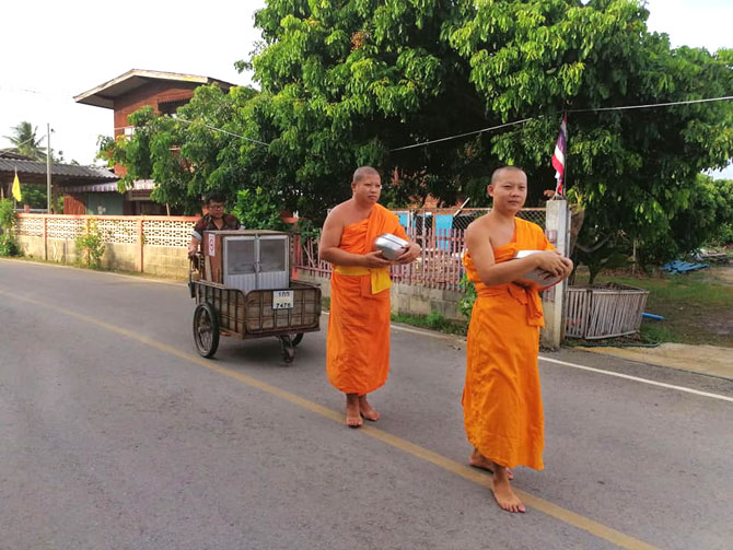 บิณฑบาตรักษ์โลกซีโร่เวสต์ (Zero Waste) เปิดใจ พระสงฆ์ 2 รูปแห่งวัดป่าบุก เข็นตู้กับข้าวเพื่อใส่อาหารที่ญาติโยมนำมาบิณฑบาต ลดโฟม-พลาสติก แก้ปัญหาขยะล้นโลก ไอเดียบรรเจิด! ให้ชาวบ้านนำอาหารใส่ภาชนะที่พระเตรียมมา ส่วนพระรับอาหารแค่พอฉันต่อวัน ยกเว้นมีงานศพจะรับเพื่อไปช่วยงาน ให้เลี้ยงอาหารจานเดียว มอบต้นไม้แทนพวงหรีด ลดขยะ ประหยัดเงินให้เจ้าภาพเพียบ!