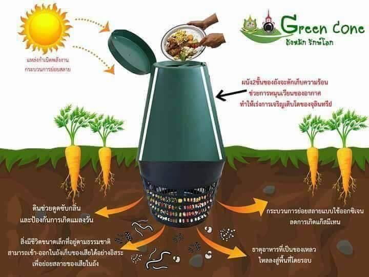 ถังหมักรักษ์โลก (Green Cone) ถูกคิดค้นขึ้นครั้งแรกในประเทศแคนาดา โดยมีวัตถุประสงค์ในการออกแบบและสร้างขึ้นเพื่อจัดการกับขยะอินทรีย์ที่เหลือจากครัวเรือน เพื่อไม่ให้เป็นแหล่งเชื้อโรคหรือไปปนเปื้อนกับขยะอื่นๆที่สามารถนำไปใช้ประโยชน์ต่อได้ อีกทั้งยังได้ประโยชน์ในเรื่องของธาตุอาหารที่เป็นผลพลอยได้ใช้ในการปรับปรุงดิน ทำให้ดินมีความเหมาะสมต่อการเจริญเติบโตของพืช ที่ได้ชือว่า Green Cone เนื่องจากในต่างประเทศถังต้นแบบที่จัดทำออกจำหน่ายมีสีเขียว และรูปร่างลักษณะของถังดังกล่าวจะมีลักษณะคล้ายทรงกรวยของโคนไอศครีม แต่อีกนัยหนึ่งแม้ไม่ใช่ถังสีเขียวแต่มันก็ถูกออกแบบมาในการลดขยะอินทรีย์ในแนวกรีนๆเช่นกัน โดยในวันนี้เราจะพาทุกท่านไปเรียนรู้วิธีการทำและหลักการทำงานของถังหมักรักษ์โลกที่ถูกต้องตามหลักวิชาการกัน