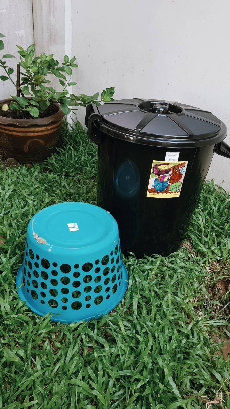 2. ถังพลาสติก 2 ใบ (ขนาดเล็ก1 ใบ และขนาดใหญ่ 1 ใบ)