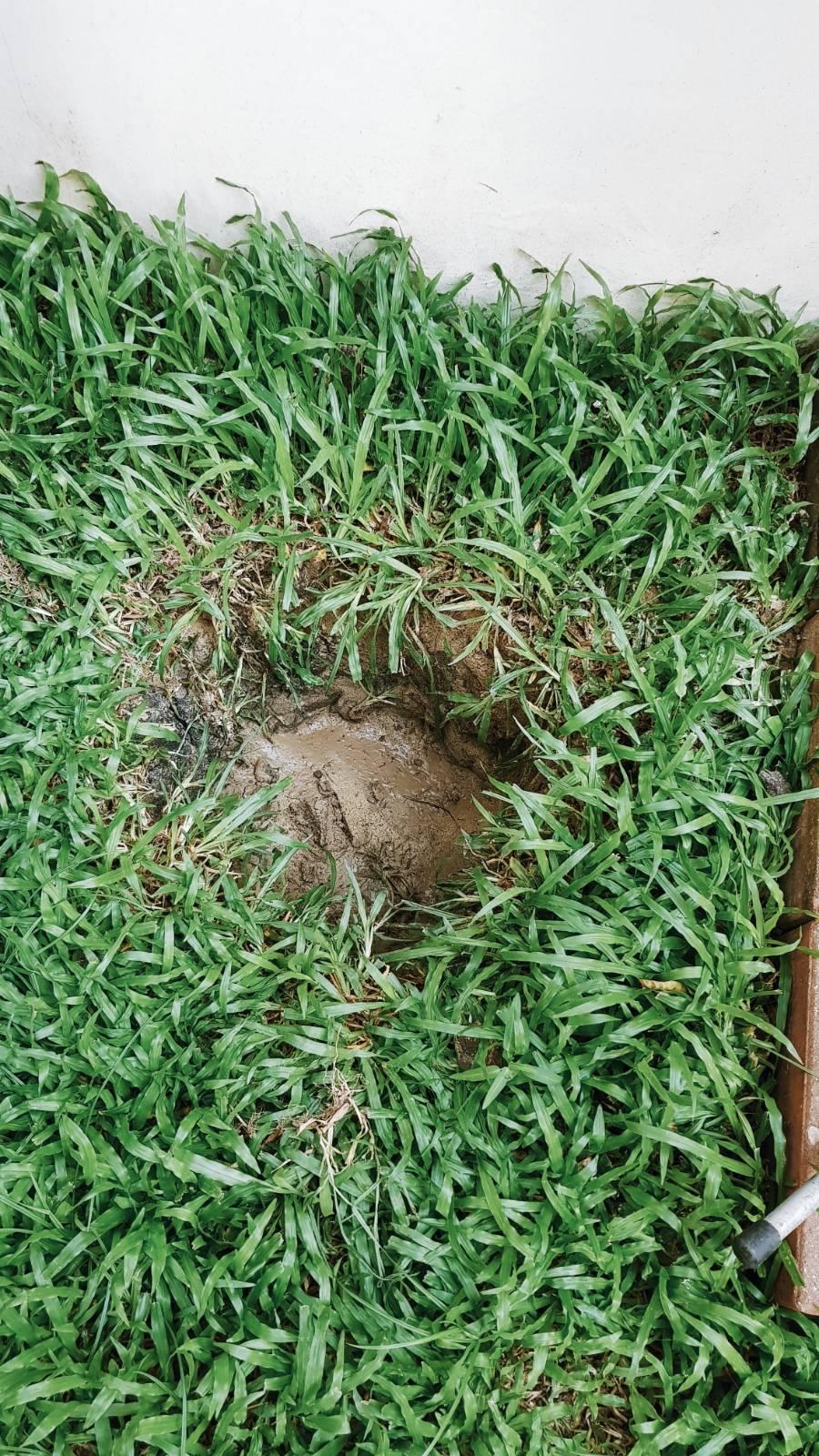 2. ขุดหลุมให้มีขนาดใหญ่กว่าตะกร้า และมีความลึกมากกว่ารอยต่อของตะกร้าและถังพลาสติกใบใหญ่เมื่อวางลงไป