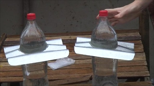 หลักการง่ายๆที่ใครเห็นก็ทำได้โดยเคล็ดลับอยู่ที่ให้เติมน้ำในขวดด้วยยาฟอกขาวหรือแอมโมเนียเพื่อป้องกันตะใคร่น้ำเท่านั้นเอง
