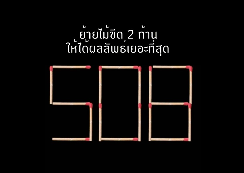 ฝึกสมองลองปัญญาให้รู้จักคิดนอกกรอบลองขยับไม้ขีด 2 ก้านให้ได้ผลลัพธ์มากที่สุด ลองทำดูก่อนซักรอบแล้วค่อยกดดูเฉลยนะ