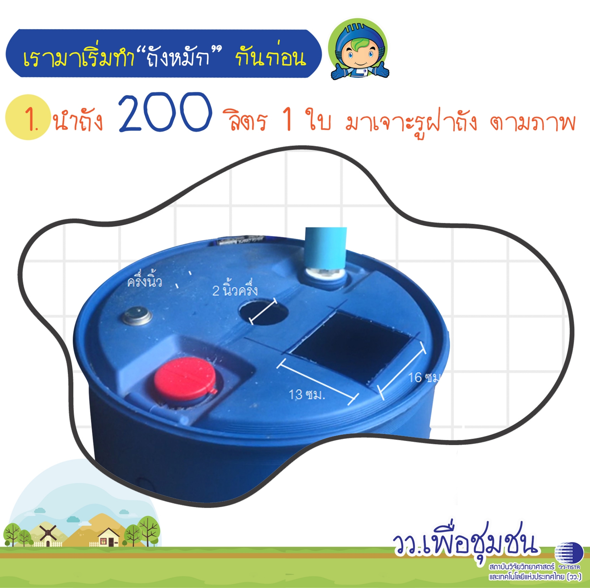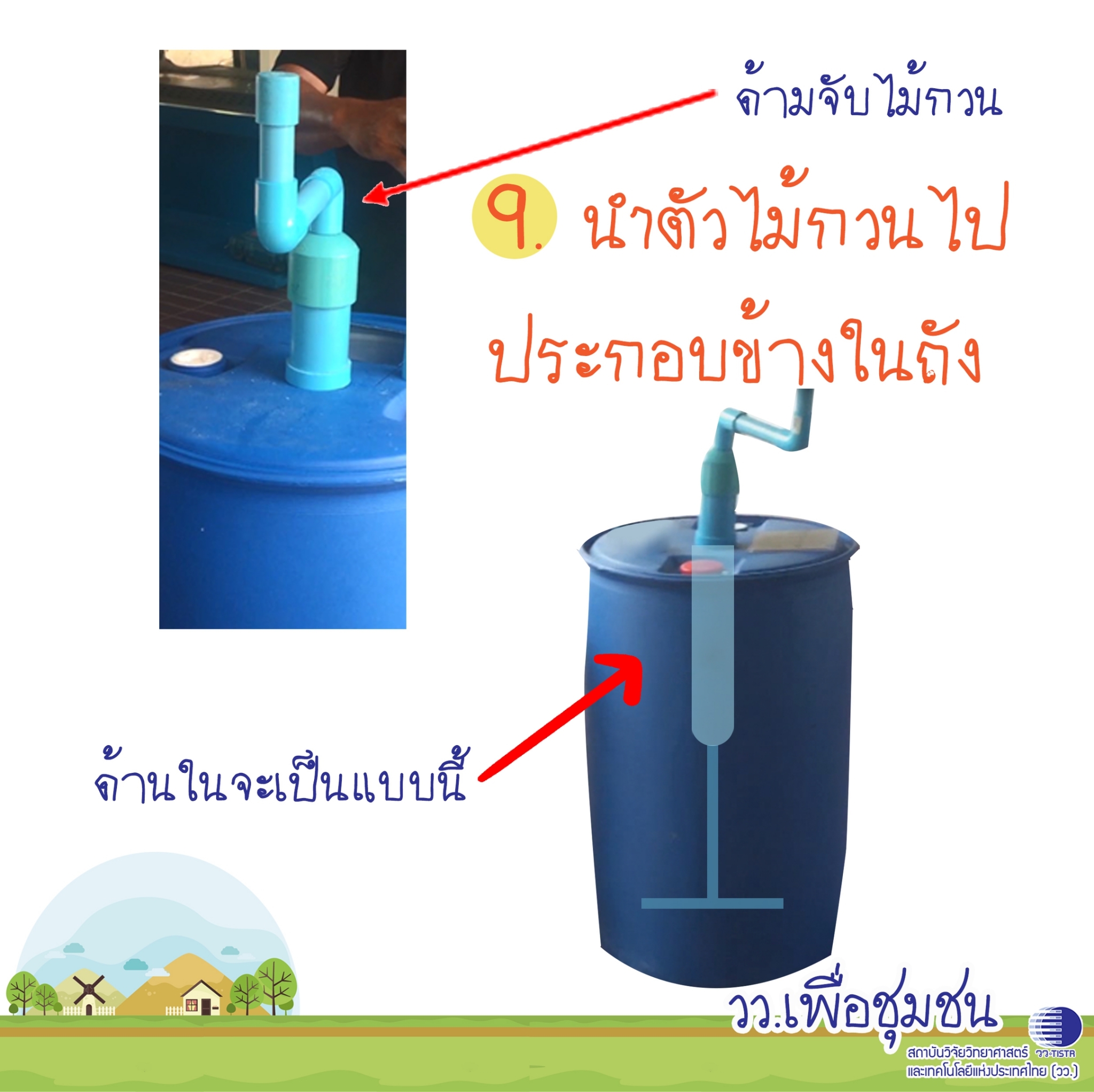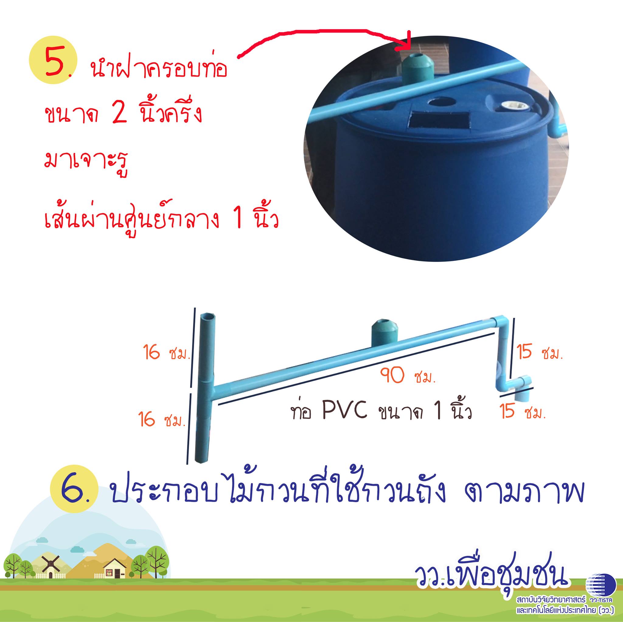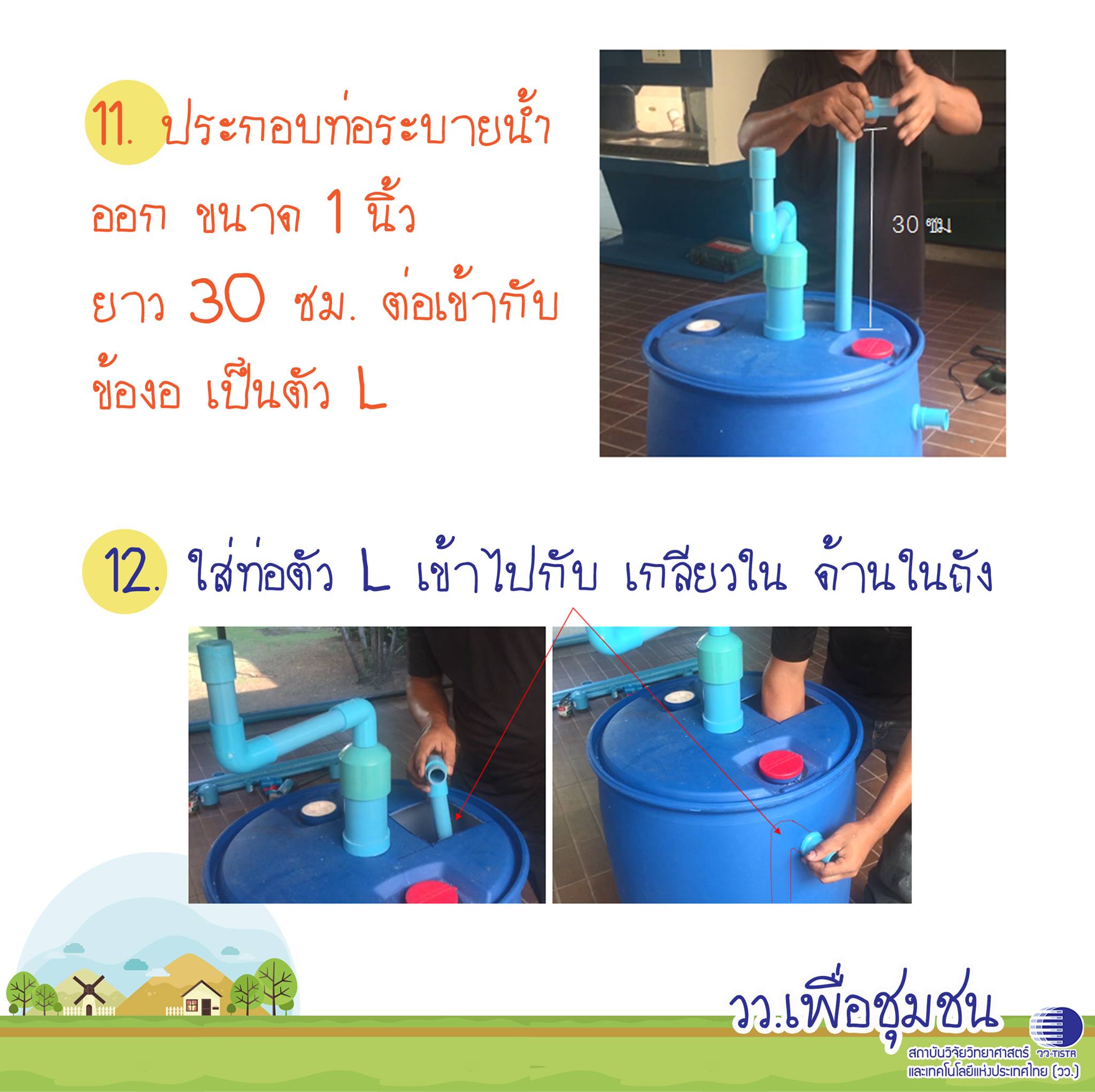 หมายเหตุ เหมาะกับครัวไทยหรือครัวเปิด ที่มีพื้นที่หลังบ้าน หรือบ้านสวน เศษอาหารที่หมักแล้วจะล้นออกมาทางท่อน้ำล้นสามารถเอาไปทำปุ๋ยได้
