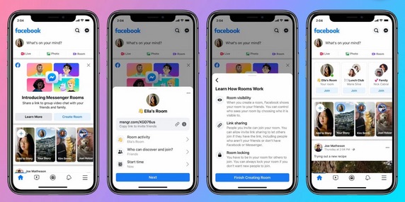 เฟสบุ๊กเริ่มเปิดตัวระบบวิดีโอแชทรูม ซึ่งจะสามารถส่งคำเชิญผ่านฟีดข่าวหรือการแจ้งเตือนของ Facebook ไปยังเพื่อนสนิทของคุณโดยอัตโนมัติ นอกจากนี้ยังสามารถเชิญเพื่อนบางคนหรือแชร์ลิงก์ที่ทุกคนสามารถใช้เพื่อเข้าร่วมห้องของประชุมออนไลน์ได้