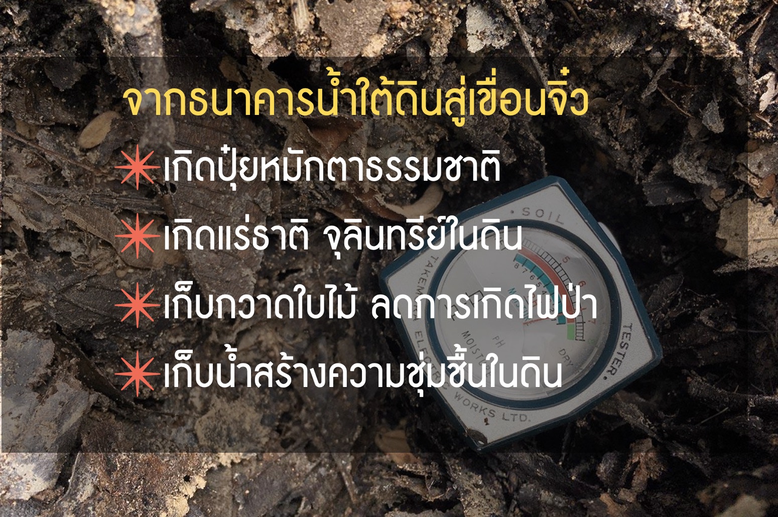 - สามารถสร้างแนวกันไฟในพื้นที่เสี่ยงไฟป่าได้ดีขึ้น ลดการสูญเสียอินทรียวัตถุจากหน้าดิน